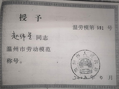 趙偉星于榮獲2005年溫州市勞動模范稱號,2001年、2002年連續兩年被評為浙江省設備管理先進個人。